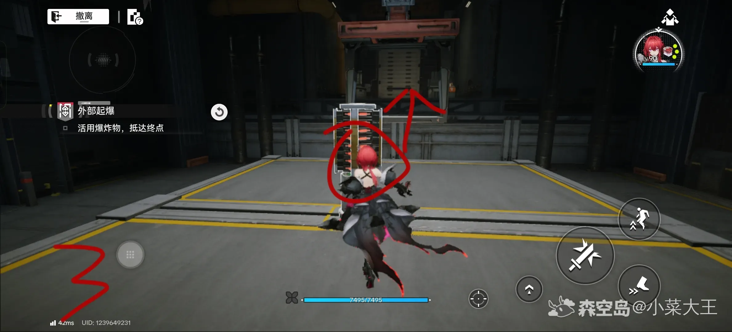 9. 在中间区域时,使用火球攻击对面开关,使前方平台与所在平台保持平行,再次攻击停止移动。把握最佳时机完成跳跃
