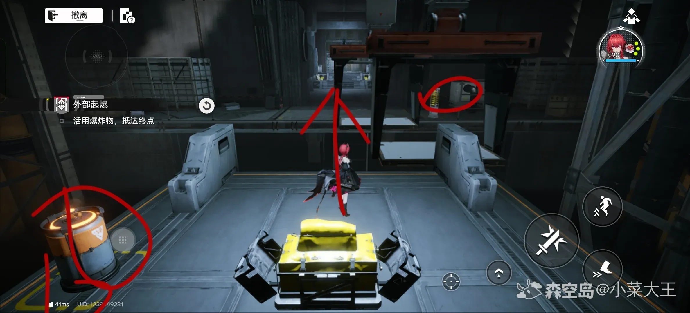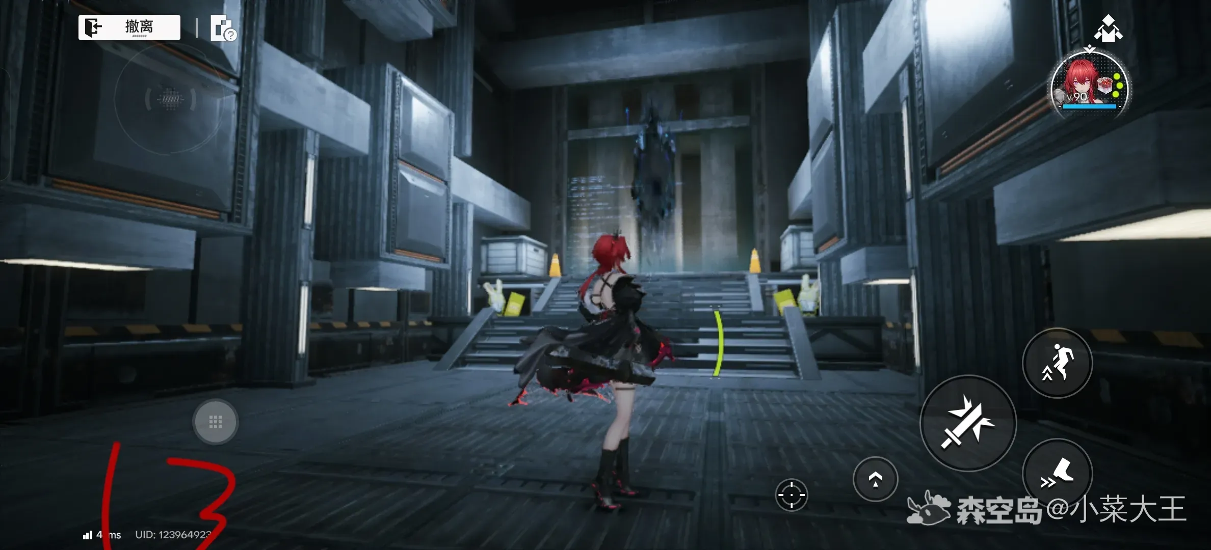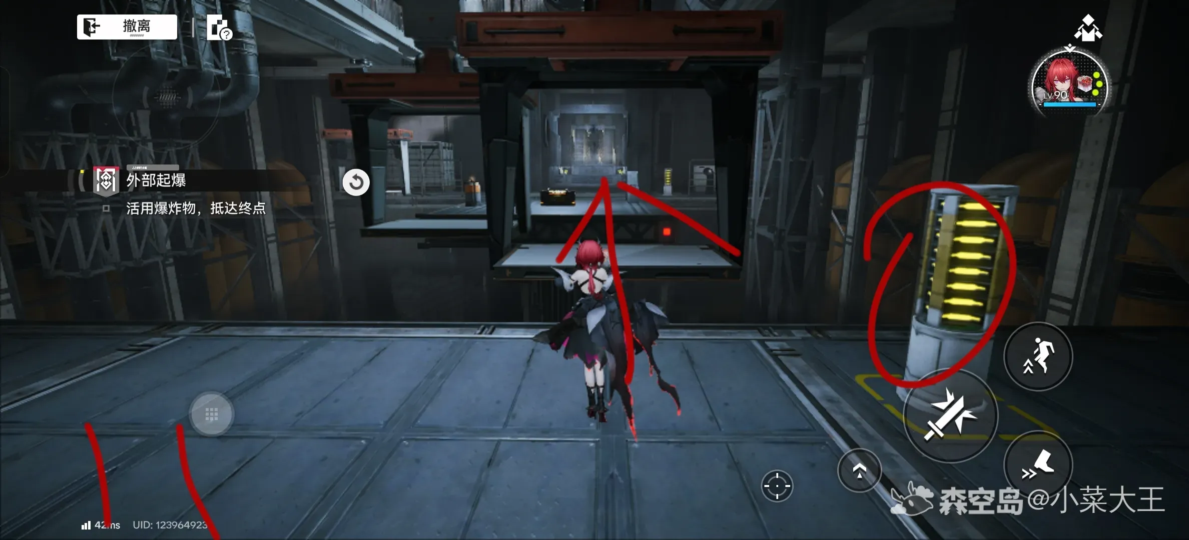 3. 取得宝箱后转向正前方,再次攻击开关启动平台。当平台移动至门扉位置时,迅速攻击开关使其停驻,随即移动到指定点位