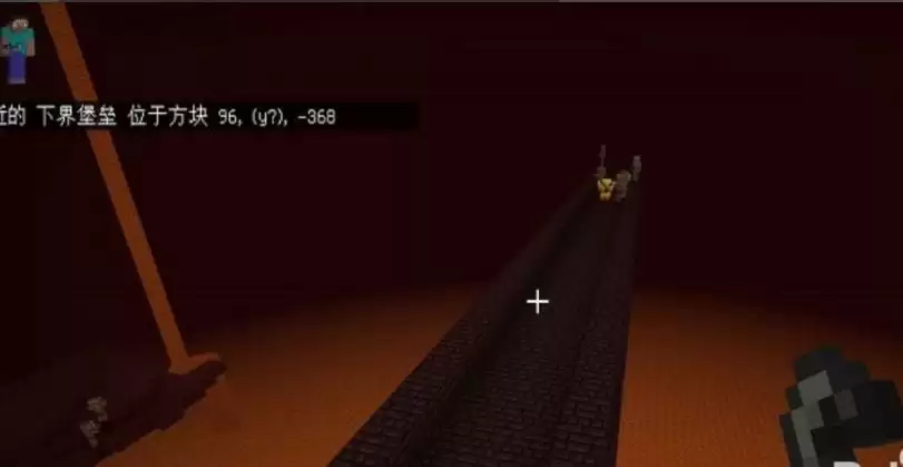 地狱堡垒建筑群通常呈"长条状"分布,主要沿南北方向(Z轴)延伸。建议玩家优先沿着东西方向(X轴)移动寻找,这样更容易发现堡垒结构。如果沿着南北方向搜寻,可能需要穿越数百格的距离才能找到目标。