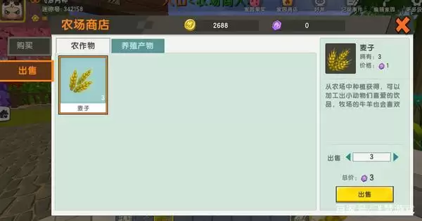 第四步:带着成熟的小麦再次找到农场商人。他不仅出售各种农作物种子,也回收成熟的作物。我们将收获的小麦出售给他,每出售一个小麦就能获得一个家园币,这样玩家就能稳定获得3个家园币了。