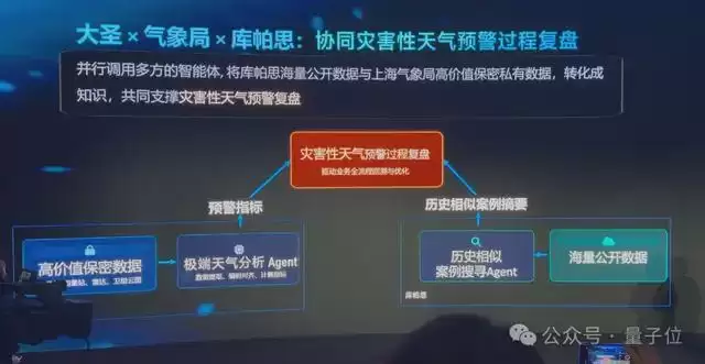 在“大圣”与上海气象局和上海库帕思科技有限公司的合作中,高保密数据仅需返回预警指标,海量PB级数据仅需返回相似案例,最终由大圣整合输出,让原本不可用的数据变得可用,让海量数据查询变得高效。