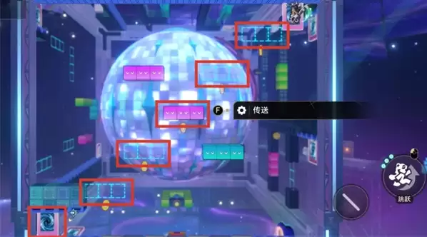 2、弹奏完毕后,正常使用二次元JUMP,来到“倒反天罡”区域。这里需要一直【向右+跳跃】,看准时机,一步步跳向上方的传送门。操作上需要一点耐心,慢慢来即可。