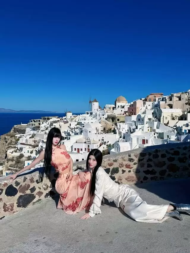 姐妹一起在希腊留下靓影,哇!超美的姐妹,尤其和妈妈一起出镜的时候,三个女人看着真的特别像姐妹。