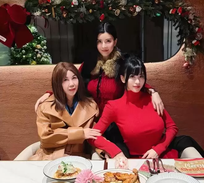 主要是母女三人合影实在是太漂亮,妈妈比女儿漂亮,同框的三人倒像是三姐妹。