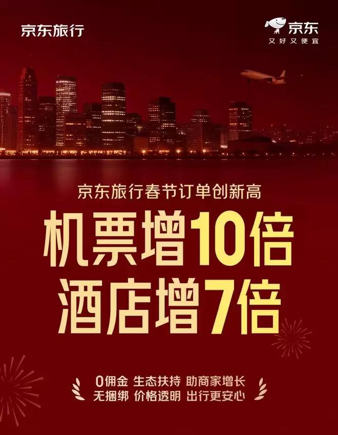 京东发布春节出行数据:机票订单增10倍,酒店预订涨7倍