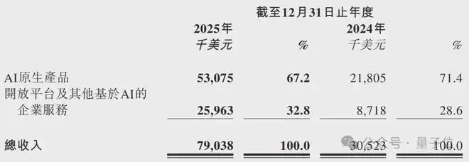 来自AI原生产品的收入,指的是由MiniMax、MiniMax语音、海螺AI、星野等应用的订阅收入。