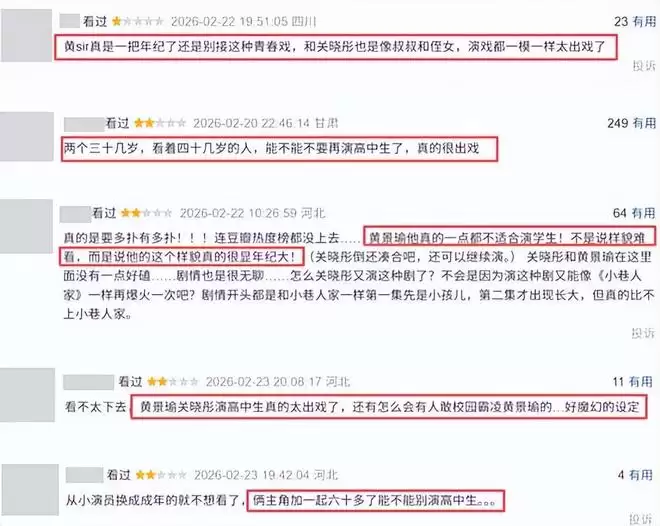 但是,剧中也不乏一些槽点,比如年龄30上下的演员,要从角色的学生时代演起,看起来相当违和。