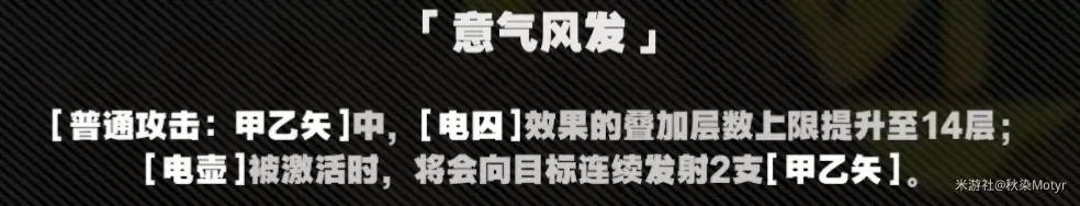这个效果强化了「甲乙矢」与「电掣」的联动:不仅将「电囚」叠层上限提升至14层,显著增强持续伤害能力;而且在「电掣」激活时,会连续发射2支「甲乙矢」,让瞬间爆发输出得到明显提升。