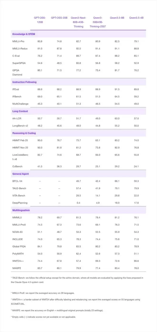 ▲Qwen3.5-9B和Qwen3.5-4B的测评情况