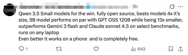 ▲Qwen3.5社交平台X推文部分截图