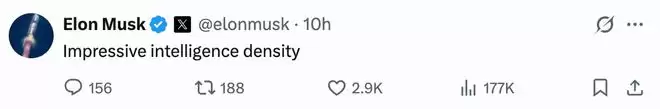 模型一发布,不仅开发者圈讨论热烈,连马斯克也空降Qwen社交平台X推文下的评论区,他评价:“令人惊叹的智能密度。”自家Grok4.2发布在即,马斯克对中国大模型同行的关注度不减。