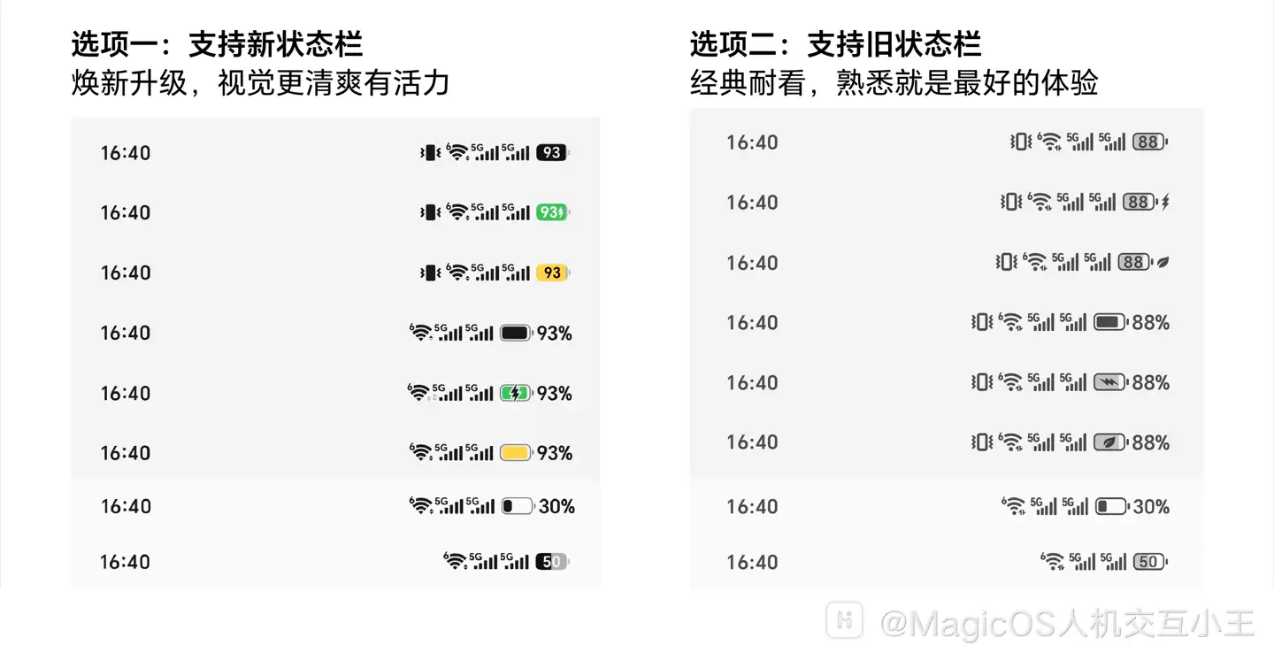 荣耀MagicOS新版状态栏预览,诚邀用户在线建言