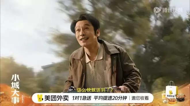 更引人关注的是,不少剧集为了提升品牌与剧中场景的融合度,开始尝试让剧中的角色,演绎与剧集相关的剧情,进而带出品牌,整体内容类似于剧集的番外、花絮。比如在《小城大事》中,美团外卖、元宝等品牌的片头广告就采用了这一玩法。