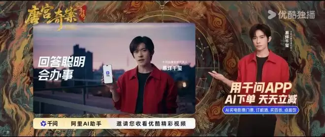 进入2026年,优酷的S+级大剧《唐宫奇案之青雾风鸣》,则将片头的黄金广告位,留给了开始大力抢夺C端市场的千问,配合后者“疯狂”的请全网喝奶茶、看电影等营销活动。在此之前,以10亿红包的强势玩法将“AI大战”推向高潮的腾讯元宝,在剧集市场也有行动,腾讯视频出品的《小城大事》中,元宝15秒的贴片广告占据了该剧的片头广告位。