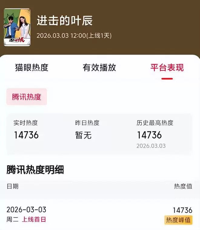 《进击的叶辰》热度破1.4万,李泌宣赌赢了多少资方青睐?