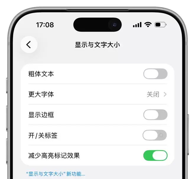 从肉眼可见的变化来看,本次更新并没有太多新内容。此前在"辅助功能 > 显示与文字大小"中新增的"减少高亮反射效果"开关,目前已完成汉化,但实际测试中暂未发现开启与关闭后的明显区别。