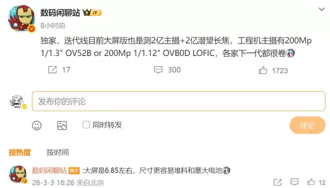 这年头旗舰机卷影像已经不是什么新闻,但双2亿同时上还是第一次听说,更关键的是工程机主摄有两套方案在测,分别是1/1.3英寸的OV52B和1/1.12英寸的OVB0D LOFIC。