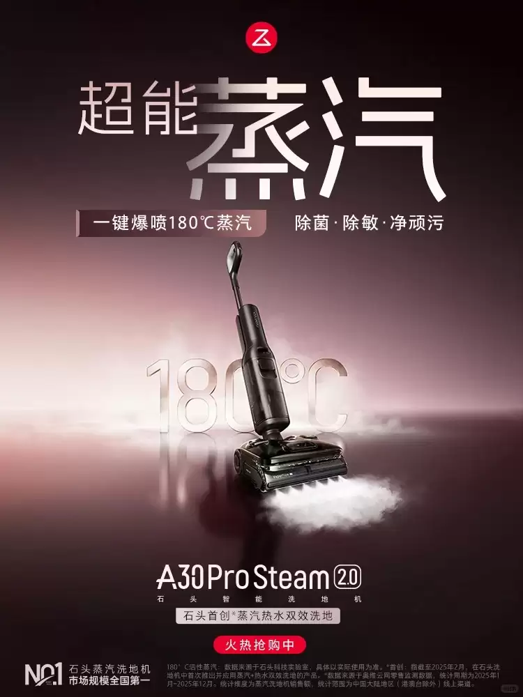 美学表达的色彩之下,是石头A30 Pro Steam 2.0作为蒸汽洗地机专家的硬核实力。