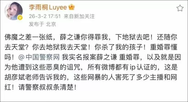 李雨桐实名举报薛之谦涉嫌重婚罪,并指控其杀害亲生子