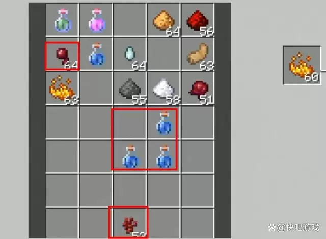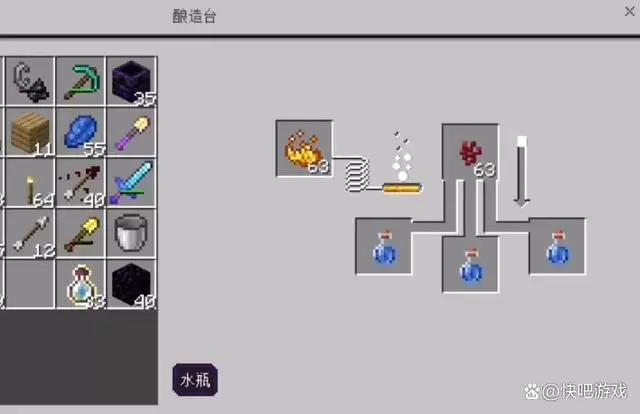 1,首先我们需要找到一个酿造台,然后右键点击进入酿造台;2,接着准备三个瓶子,左边放上烈焰粉,下面放三个水瓶,中间放下界疣,制作粗制的药水;3,接着我们在上方放上闪烁的西瓜片,就可