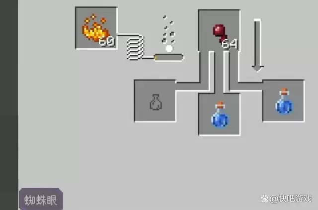 2、得到粗制药水后,再次打开酿造台,将蜘蛛眼和粗制药水一同放入,进行进一步酿造。
