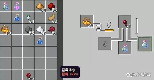 制作剧毒药水的核心材料就是下界疣、水瓶和蜘蛛眼。当你集齐这三样东西后,直接在酿造台操作即可。