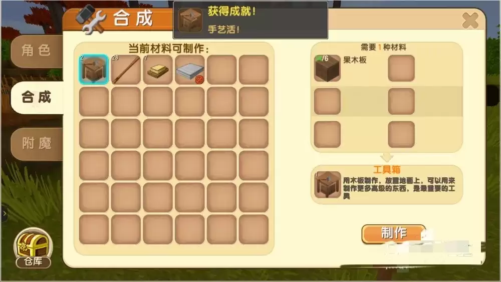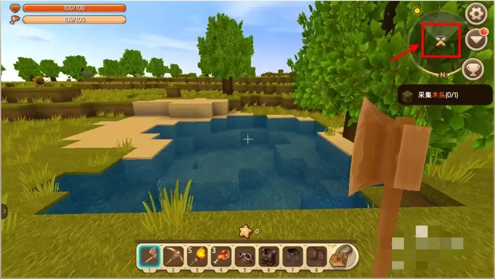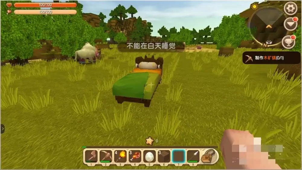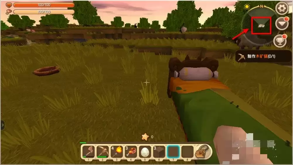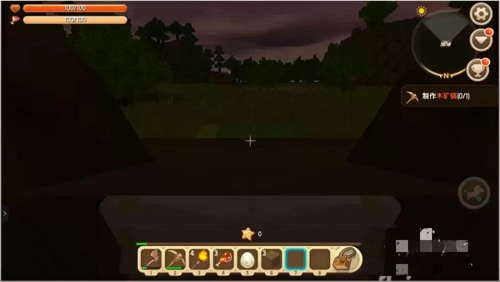 游戏开局的首要任务就是砍树收集木材,接着按下B键打开背包。在背包界面里,将木材分解为木板,当木板数量足够后,在背包中合成工作台,最后将多余的木板合成为小木棍。