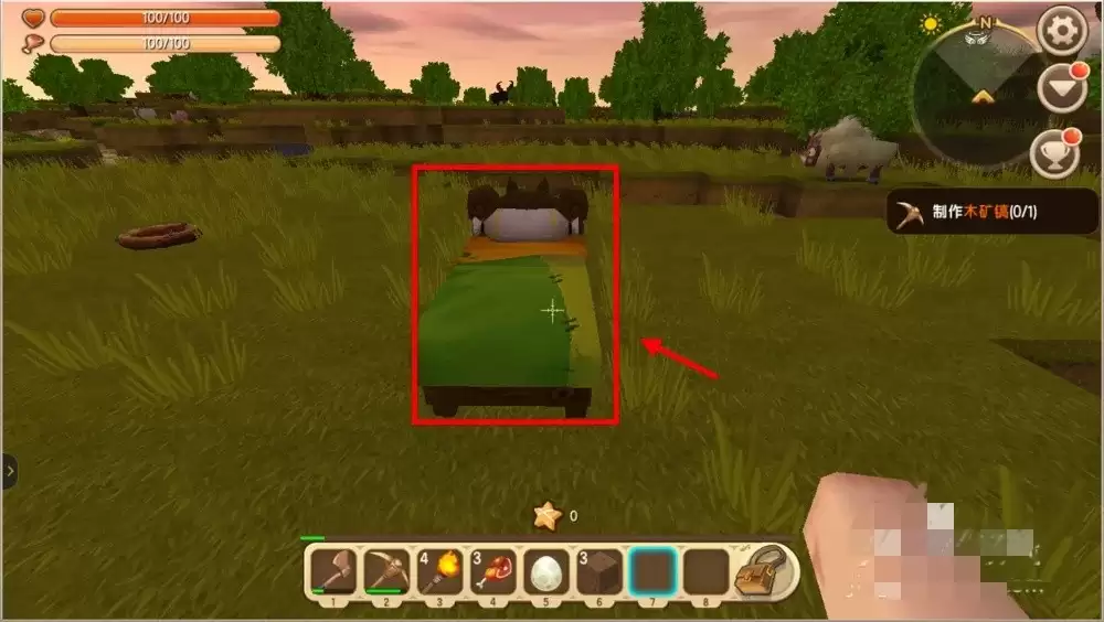 如下图中所示的白色绵羊是必须猎杀的目标,长按石矛瞄准后松手,连续投掷两次即可解决一只羊。