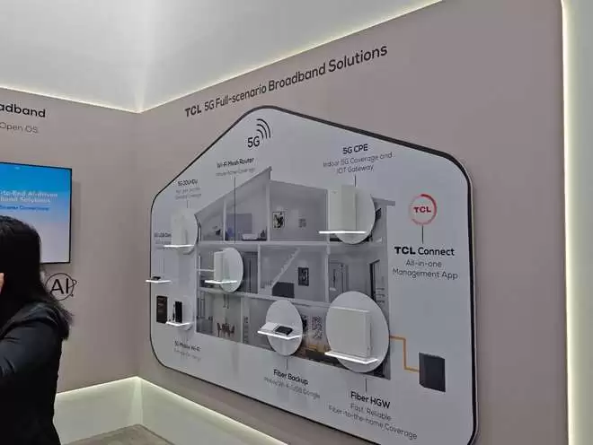 此外,TCL也展出了它们对智能家庭场景的范本。案例里展示了一栋两层小屋被拆开,里面对应摆着Wi-Fi Mesh路由、5G CPE、光纤入户网关以及应急的备份连接方案,旁边再用一条清晰的连线把它们串成「从光纤到 5G,再从客厅到卧室」。
