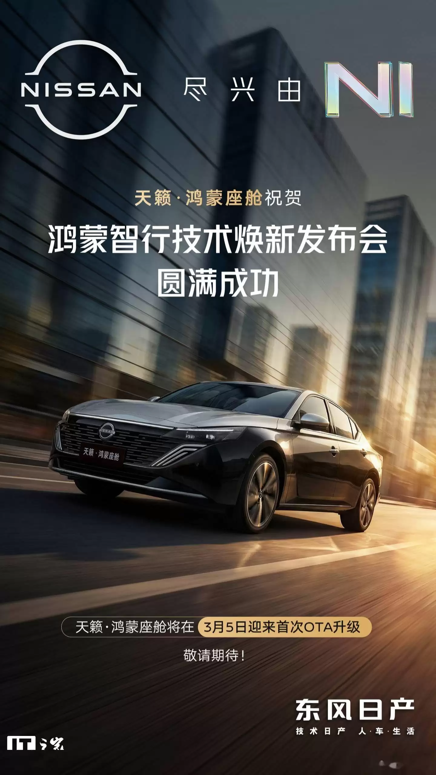 东风日产天籁鸿蒙座舱3月5日首迎OTA升级,鸿蒙智行技术革新
