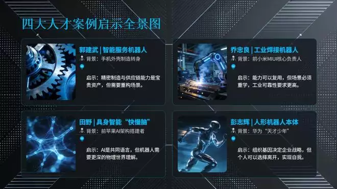 如果说大厂战略是基因的必然,那么人才出走,则是个体对组织局限的突围。四位工程师的故事,拼凑出一幅完整的 “手机人→机器人” 能力迁移图谱。