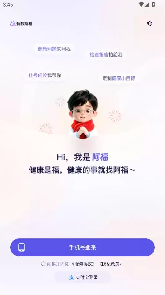 蚂蚁阿福app怎么联系人工客服,在本站下载安装好软件打开并阅读隐私保护提示,点击同意,进入登录页面点击右上角客服图标,在这里可以寻找智能客服和人工客服。选择即可。蚂蚁阿福app人工