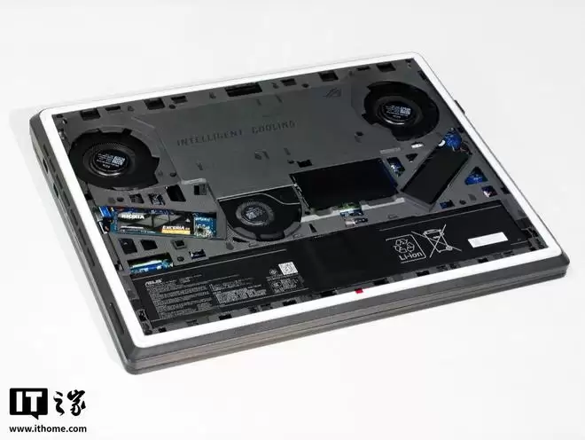 除了高达 10000MB/s 的超快读取速度,铠侠 VC10 固态硬盘还是一款定位低功耗低发热的“扩容神器”,因此我们也实测了将它装在游戏笔记本上运行的温度表现。首先,我们在一台拥有 2 个 2280 标准尺寸 M.2 插槽的游戏本上,非常轻松就装好了这块单面颗粒的铠侠 VC10 固态硬盘。由于 M.2 插槽部分是完全露出的,没有覆盖任何散热片或辅助件,因此散热好不好完全看它的发挥。