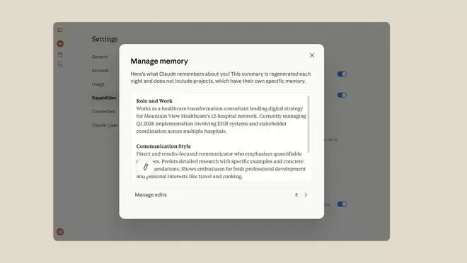 Claude能够通过AI分析了解用户在先前对话中的偏好,智能划分上下文,同时还支持对已存储的所有内容进行查看和分析。