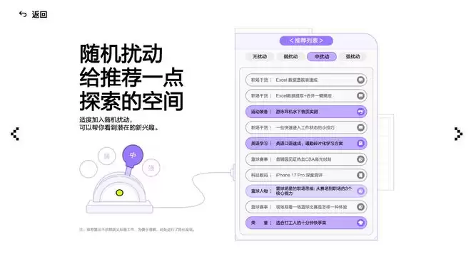 这一演示过程揭示了推荐算法的目标,不光在于发现和记住用户喜欢的内容,也包括帮助用户挖掘潜在兴趣、看到更广阔的世界。在双塔模型演示环节,体验者可以看到算法计算虚拟用户与视频的推荐指数,直观感受内容与用户的匹配逻辑;拨动兴趣时钟指针,便能发现算法如何依据时间维度调整推荐倾向,贴合用户不同时段的兴趣偏好;拖动随机扰动滑块,还能观察到推荐列表从单一到多元,理解算法如何帮助打破“信息茧房”。
