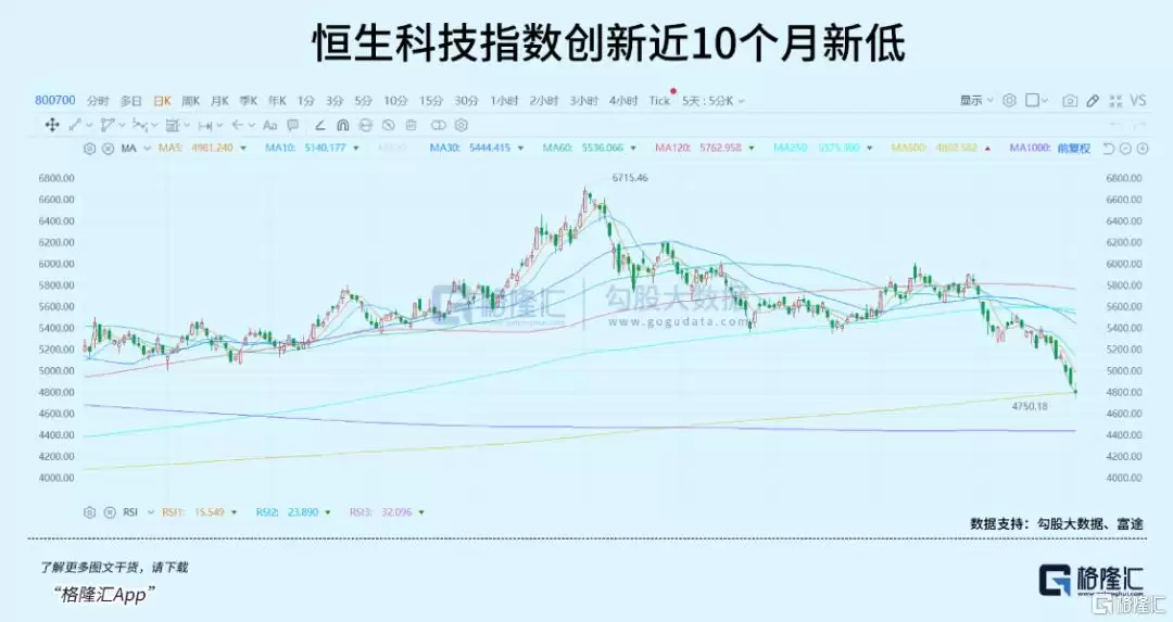 港股同样未能幸免,恒生科技指数尤为惨烈,已跌破5000点关键支撑,创下近十个月以来的新低。