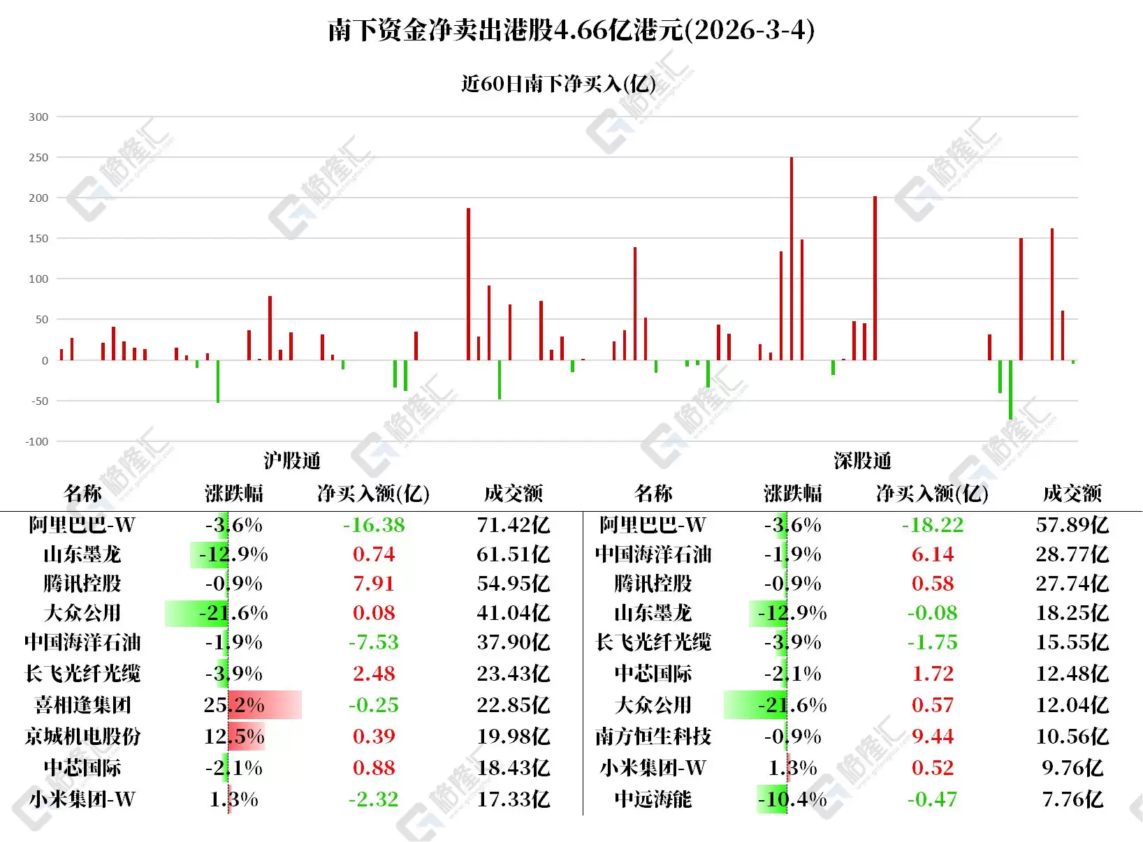 南下资金净卖出阿里34.5亿港元,图解腾讯逆势加仓