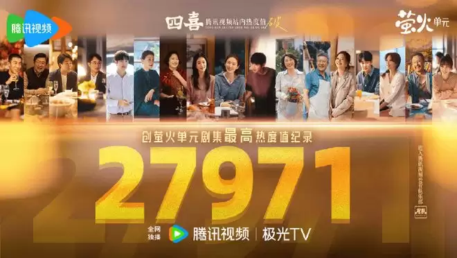 其中既有吸引到广泛热议的话题热剧,如去年年底播出的现实主义家庭情感剧《四喜》聚焦“丧偶孕妇抚养权争夺”“彩礼矛盾”“女性职场歧视”等社会痛点引发大量女性群体围观,以腾讯视频站内热度峰值27971刷新当时萤火单元历史纪录。