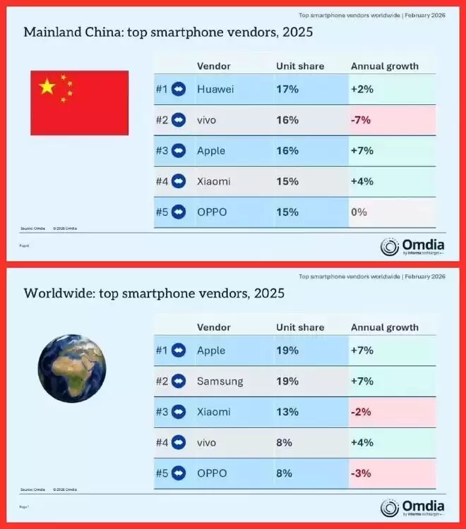 刚看到Omdia这份2025年出货量报告的时候,笔者还是有点感慨的,不是因为数据,而是因为这个时间点太微妙了。