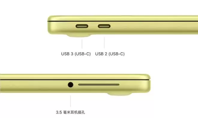 充电和外设扩展方面,一个 USB 3 (USB-C) 端口,可支持充电、DisplayPort、USB 3 (速率最高可达 10Gb/s);一个 USB 2 (USB-C) 端口,可支持充电、USB 2 (速率最高可达 480Mb/s);还保留了3.5 毫米耳机插孔。