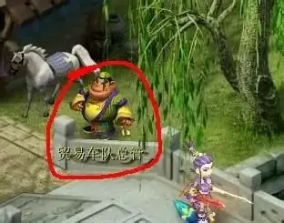 1、进入游戏后,找到“贸易车队总管”,出售角色必须前往他那里,车队总管就在酒馆上方的桥边。