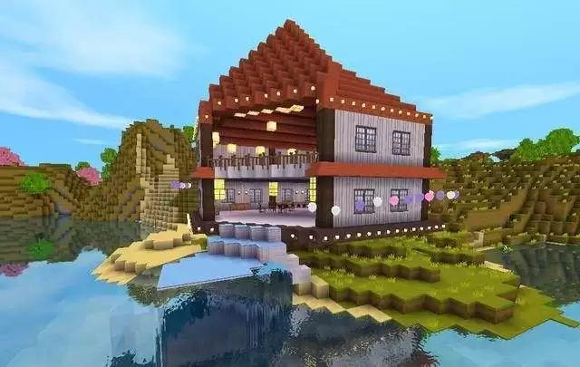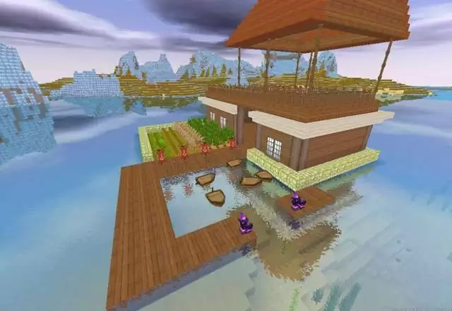 其次是水上别墅。现在正值夏季,水上建筑也就成了当下最流行的选择。不少玩家在建房前,都会先去物色一片既壮阔又美丽的水域。在水上建造的房子不仅气派,而且非常安全。为什么说它更安全呢?因为建在水上的房子完全不用担心“爆爆蛋”的骚扰。此外,其他陆地生物同样也无法破坏你的水上家园,是不是感觉安心多了?