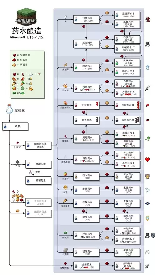 药水的种类其实非常丰富,下面我为大家整理了一份常见的配方列表。这里就以"瞬间治疗"药水为例,详细演示一下它的制作流程。