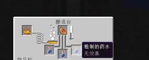 第一次酿造完成后,我们会得到粗制的药水。这时,将材料槽的地狱疣换成闪烁的西瓜,继续进行第二次酿造。