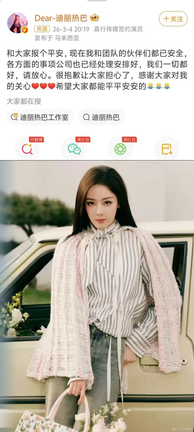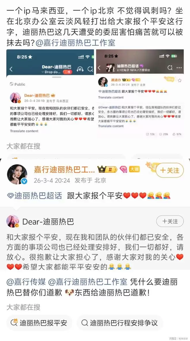 迪丽热巴发文报平安:工作争议后,IP已定位于马来西亚