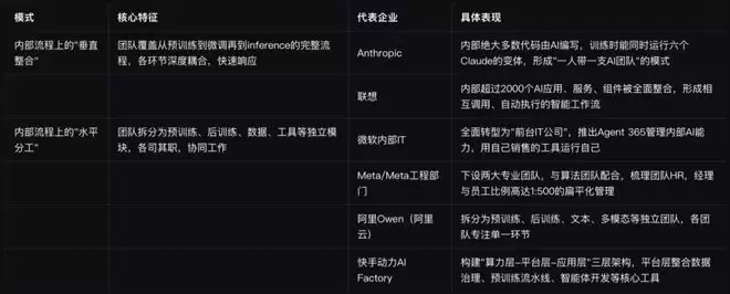 内部流程上的两种模式:AI企业的组织选择,来源:deepseek整理,制作:即梦