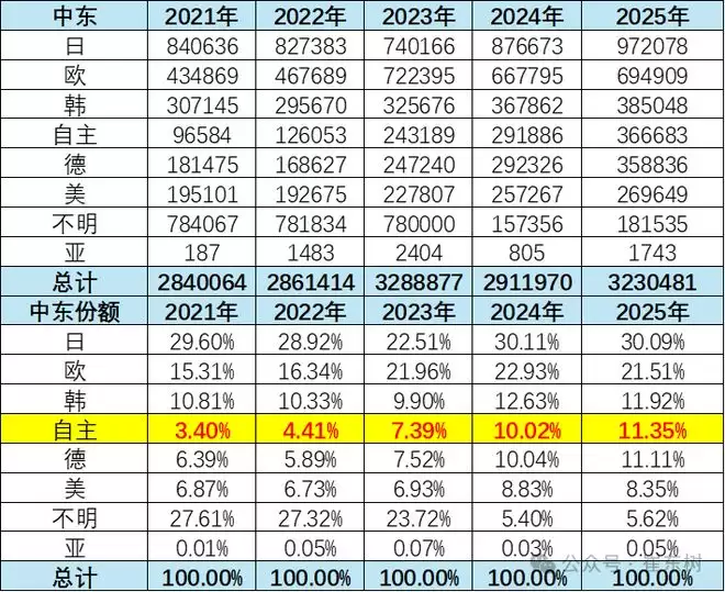 4、中东车市新能源结构分析