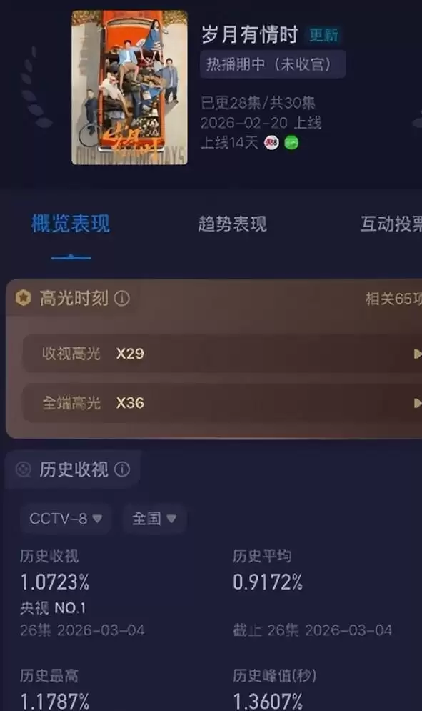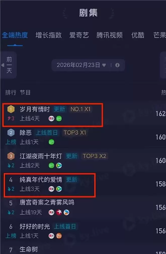 不过大家有没有注意到,《岁月有情时》刚开播的时候可是碾压同题材《纯真时代的爱情》这部剧的。