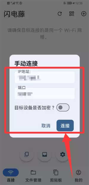 闪电藤app怎么连接,进入应用后点击右上角加号,展开菜单,在选项列表中选择手动连接功能,进入页面,输入设备的IP与端口信息,确认进行连接。闪电藤app连接教程:1、进入应用后点击右