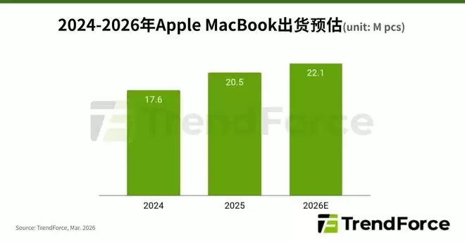 根据 TrendForce 集邦咨询于3月5日发布的最新研究报告,苹果公司近期推出的入门级笔记本电脑 MacBook Neo 起售价为 4599 元。分析预测,这款新品有望在2026年实现400万至500万台的出货量。